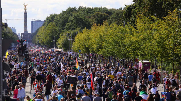 Σε μια διαδήλωση κοντά στην Πύλη του Βρανδεμβούργου, αρκετές χιλιάδες μαζεύτηκαν ακόμη νωρίς το απόγευμα, μερικοί ρίχνοντας πέτρες και μπουκάλια. Η αστυνομία συνέλαβε περίπου 200 διαδηλωτές, δήλωσε ο υπουργός Εσωτερικών του Βερολίνου Αντρέας Γκέισελ, χαρακτηρίζοντας την ομάδα ως «εξτρεμιστική». Επτά αστυνομικοί τραυματίστηκαν.